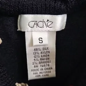 Adorable size small stretchy 68% silk Cache shimmery ruffled sleeveless top. Very chic P2P is 10 inches, top to bottom is 21 inches.