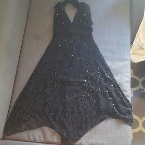 Gorgeous black sequence halter dress by Cache size small in excellent condition