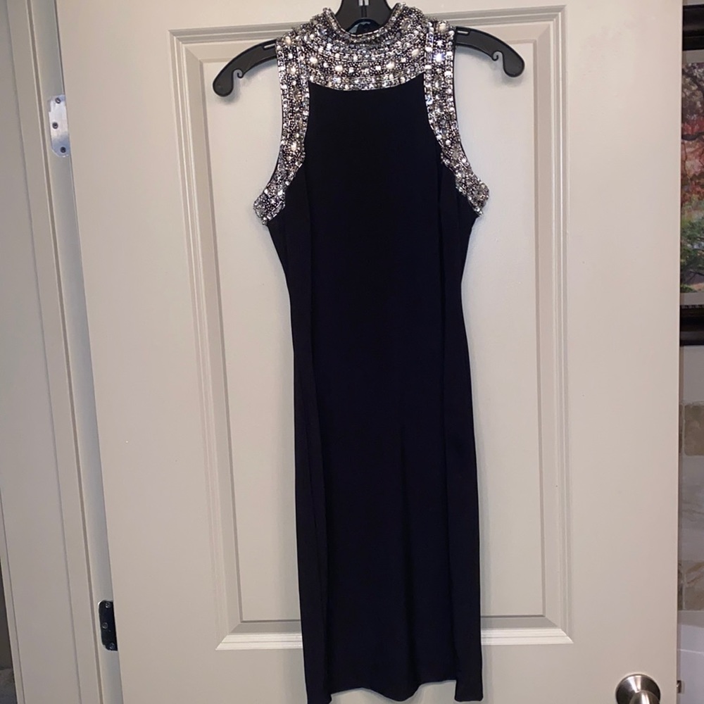 Beautiful little black dress for a night out. Stretchy material. Great fit!