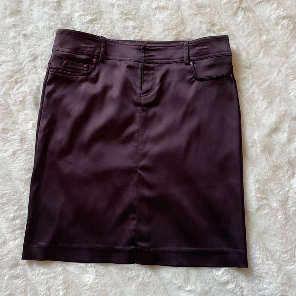 Cache Solid Novelty pencil Skirt. Color: Burgundy with beautiful sparkly beads on pockets. Please refer to pictures for measurements. Top sells separately . new never worn.