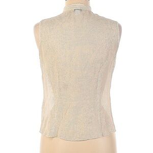 Cache sleeveless silk metallic Bibbed button front blouse medium