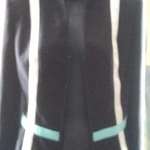 Gently worn! Cache black with aqua and white striping. Sz. 2, zip front.polyester spandex