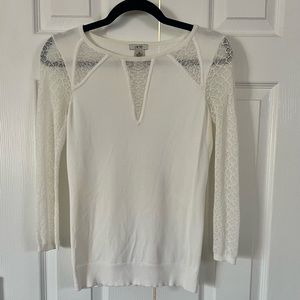 XS CACHE white sweater. Preloved super cute sweater with sheer sleeves.
