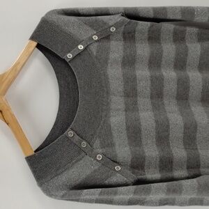 Cache' sweater size medium two tone gray button detail metallic striped Cache