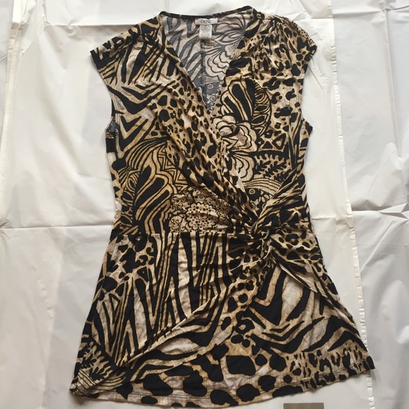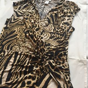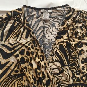 Cache wrap looking top with Black cream gold print. Very light weight on