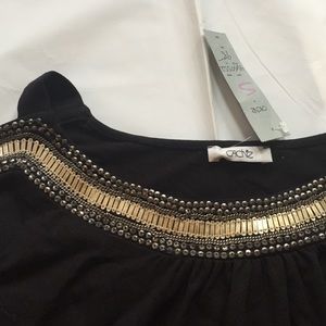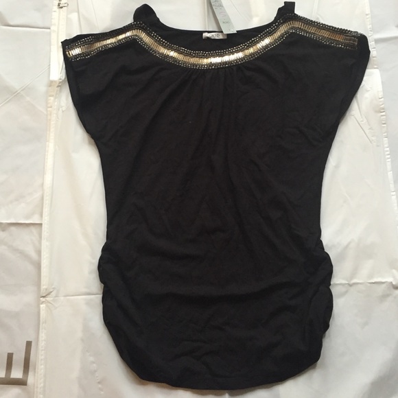 Cache Black top with silver detail and cut out arms