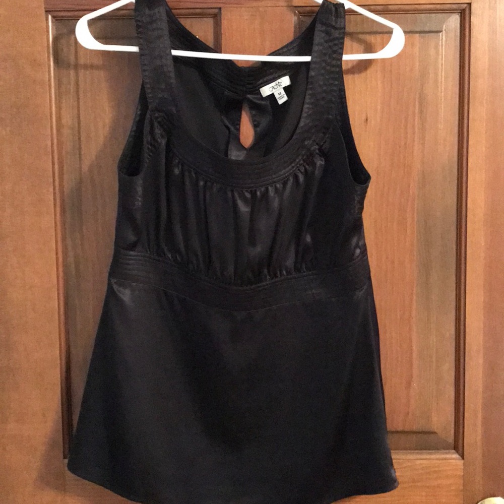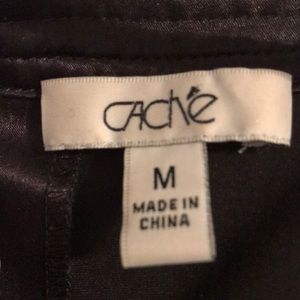 97% polyester 3% spandex. Black cache top. Great condition. Only worn a handful of times. No damage.