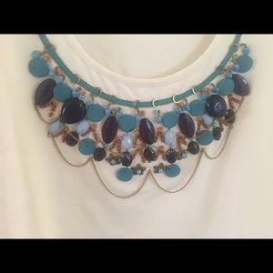 Cache scoop neck T-shirt top with attached faux turquoise stone necklace. Large Excellent pre loved condition, no holes, snags, tears, fading or pilling.