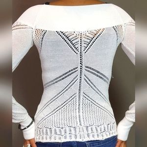 a casual top, mostly sheer, long sleeved with cowl neck, by Cache