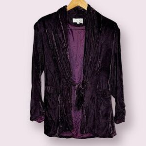 Cache velvet blazer and ribbon tie front, pockets, Pit to pit 18”