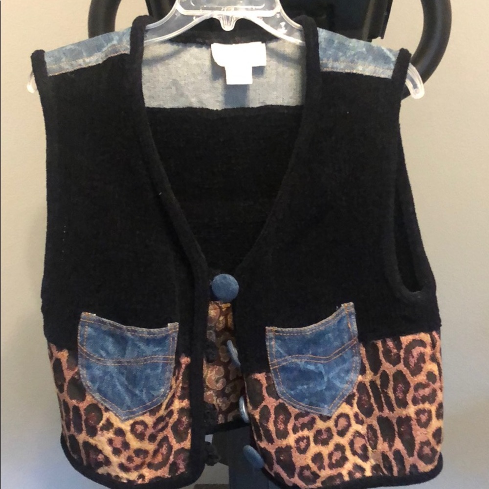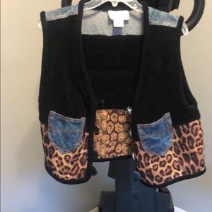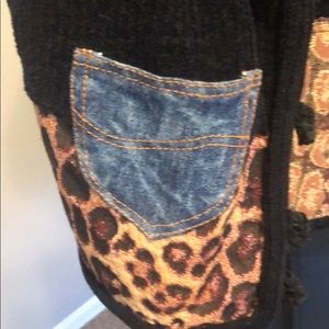 Gorgeous leopard,denim knit vest with denim pockets ,A must have!