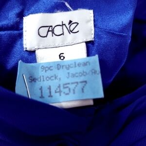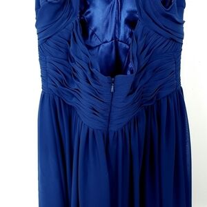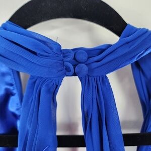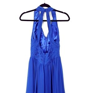 vintage Marilyn Monroe style Cache royal blue chiffon over satin halter dress with pleated bodice and skater skirt shape