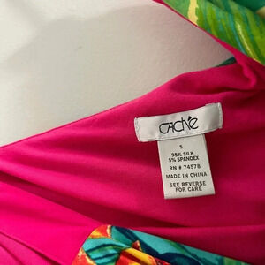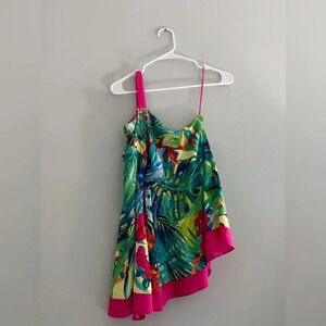 Cache y2k vintage silk one shoulder tropical print top vacation resort floral