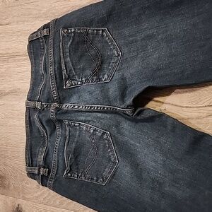 French brand, bought in France. French size 38 (US 6). Dark denim. Some wear on the bottom of legs (back only, as pictured).