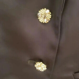 This jacket is gorgeous, rich chocolate brown in color with gold bling buttons.