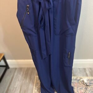 Cache Cuffed Cargo Jumpsuit Sleeveless Square Neck Waist M navy removable Strap