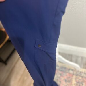 This is a beautiful jumpsuit. It has removable straps on the top that snapped. It is a cargo style with pockets.
