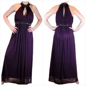 🔹️Cache Eggplant Beaded Ruched Formal Dress Size 4