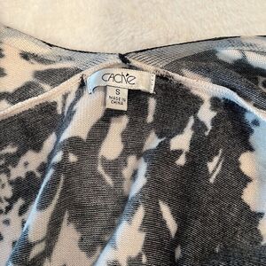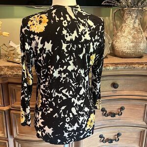 Cache 3/4 sleeves, open front cardigan size small. Colors are black white, and yellow. Worn a few times, no stains or rips. Paired beautifully for blue garments and accessories.