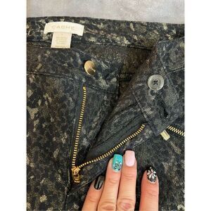 Cache Pants Womens Size 6 Brown Gold Skinny Shimmer Zip Pockets Textured Stretch