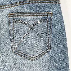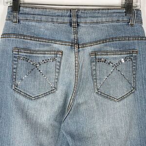 Cache Size 4 Capri Jeans Cropped Light Blue Rhinestones Cuffed Pockets 1075