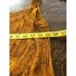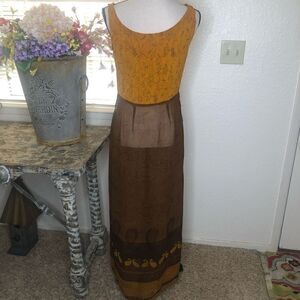 Gold crinkle fabric with brown floral print on bodice