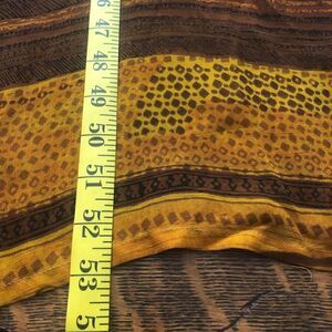 Gold crinkle fabric with brown floral print and brown semi sheer with floral and paisley print