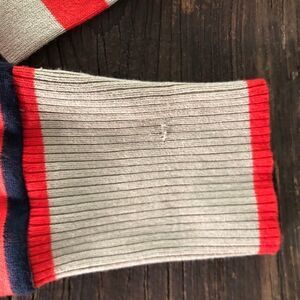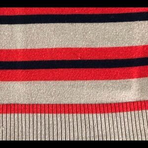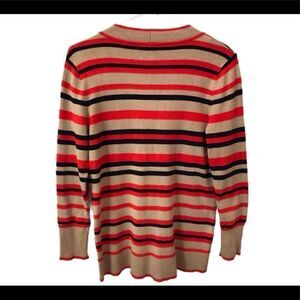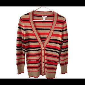 Cache V Neck Stripe Button Up Cardigan Sweater Tan, Orange and Navy Size Medium