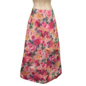 Cache Vintage Satin Taffeta Floral Pink and Orange Women's Maxi Skirt