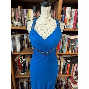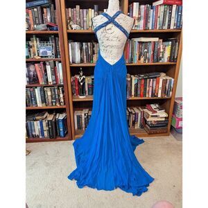 Cache Women's Size 4 Silk Blue Embellished Sequin Maxi Dress Gown Prom Wedding