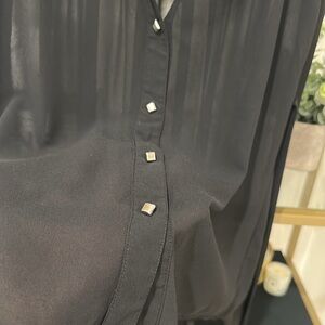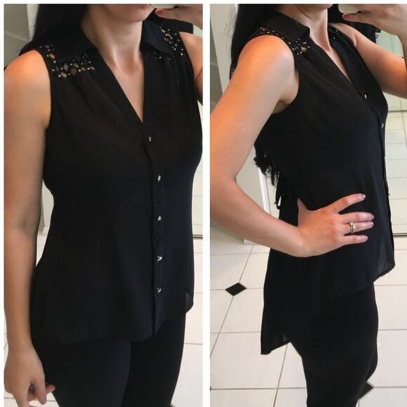 New with tags, attached and purchased for $88 plus tax!! Black with silver buttons and studs at cut off shoulder.