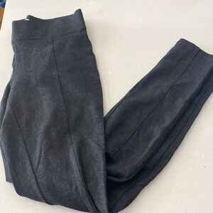 Dark heather gray leggings by Cache. Color is a dark almost black gray with small light fibers mixed in. Elegant look with stitching down the front for a professional style.