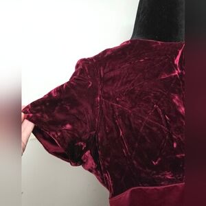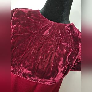 Cachet 20W Burgundy Satin and Velvet Short Sleeved Dress Empire Cherry Girl