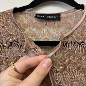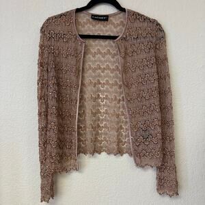 Cachet Beaded Lace Cardigan Long Sleeve Brown Size 6