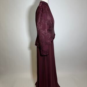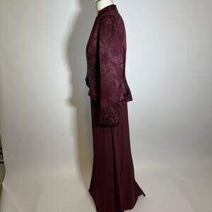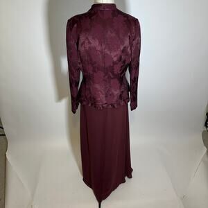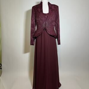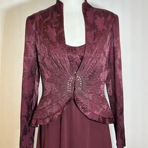 Cachet Burgundy 2-Piece Formal Beaded Brocade Maxi Dress & Jacket Set Womens 10