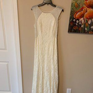 Cachet Cream Lace Beaded Maxi Gown, Size 6