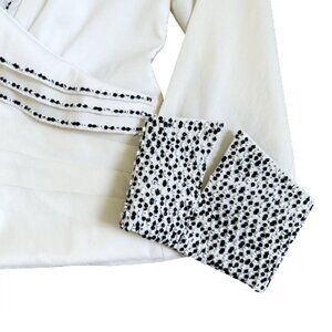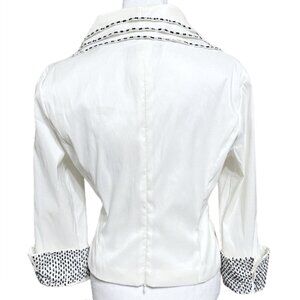 Cachet Designer Beaded Trim White Stretch Tailored Evening Blouse Top Size 8