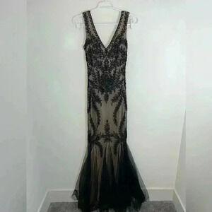 Cachet Dress Black & Nude Embroidered Lace & Mermaid size 2 formal prom dress wedding guest too!