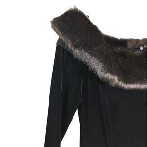 Cachet Dress Women 8 Vintage 80s Maxi Black Faux Fur Stretch Velvet Long Sleeve