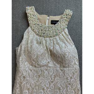 Cachet Formal Dress Gown Ivory Gold Lace Beaded Wedding Ball Size 4