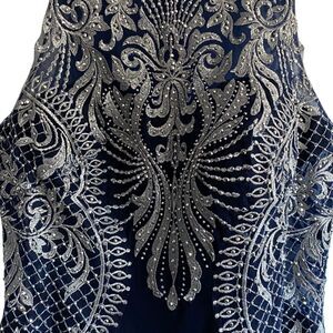 Cachet Navy Blue Rhinestone Beaded Embroidered Long Formal Dress Gown Prom sz 4