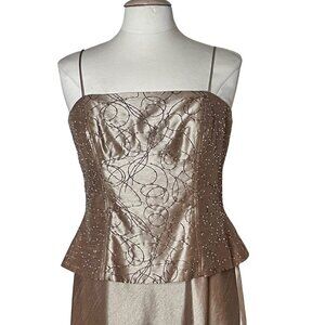 Cachet Womens 12 Jacket Dress Champagne Satin Embroidered Evening Mother Formal