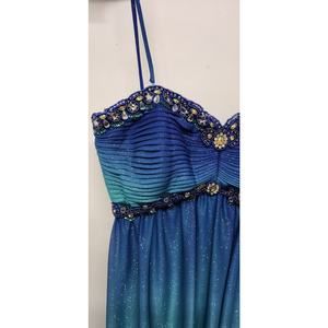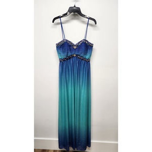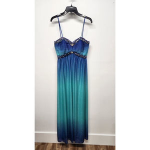Cachet Women's Y2K Teal/Blue Ombre Formal/Prom Sleeveless Maxi Dress/Gown Size 8