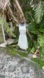 this pretty dress has a light silver sparkle to it. It looks like a halter from the front, but it actually has a little bit of a back that has a mesh insert as does the side that has been over floral embroidered and beaded with pearls. Asymmetric ham. Fully lined in an excellent condition I believe the asymmetric ham was added laterfrom a straight him.