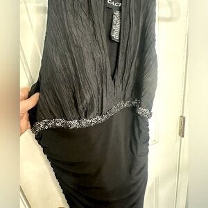 Cachet size 6 Black evening gown halter top with ruched body and sequin collar