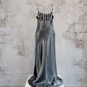 Cachet Silver Grey Slip Maxi Dress Spaghetti Strap Sleeveless Womens Size 4
