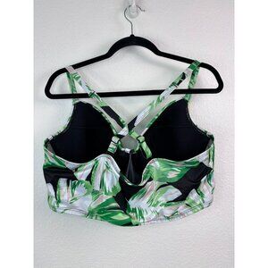 Cacique 20 42DD green tropical lightly lined balconette swim top swim skirt