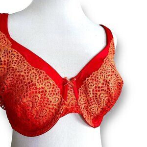 Cacique 38DD Bra Red Ombre Linear Lace Unlined Full Figure Coverage Underwire