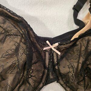 Cacique 40C Black Sheer Floral Modern Lace Bra UL FC GUC SO Pretty Nude