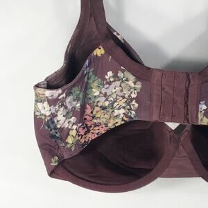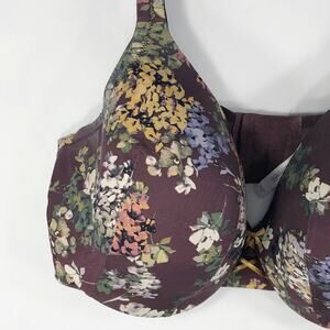 Cacique 40F Bra Full Coverage Maroon Floral Print Underwire Plus Size Stretch 70